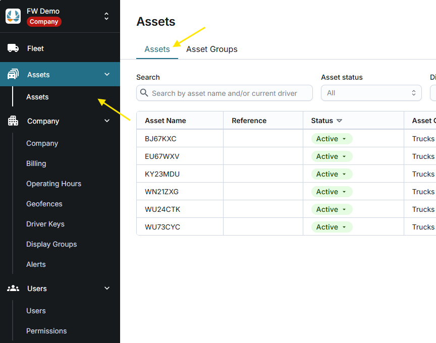 : Activated and in use. You can see these assets on the Fleet page.