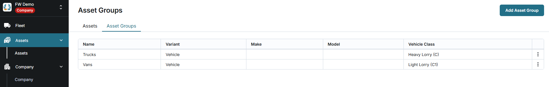 You can view and access the list of asset groups to get a detailed overview of the assets organised within the application.