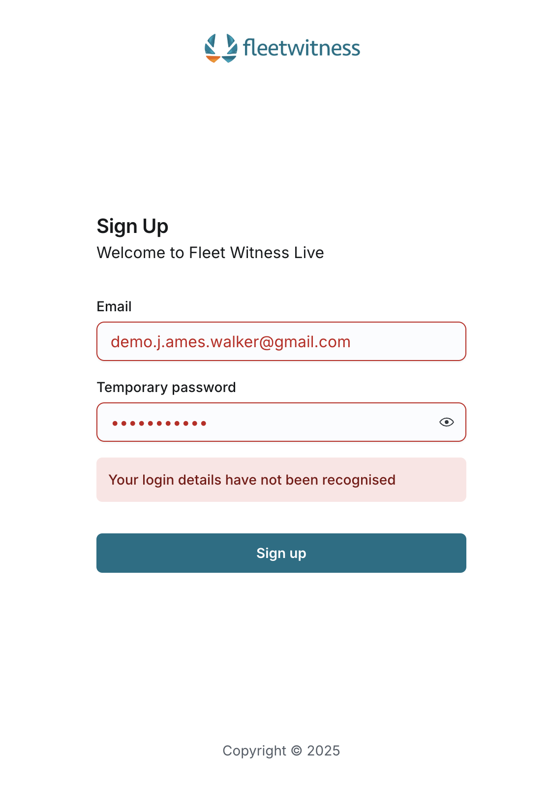 Access to the platform is by invite only so please either contact your system administrator, or contact Fleet Witness if you wish to open an account.