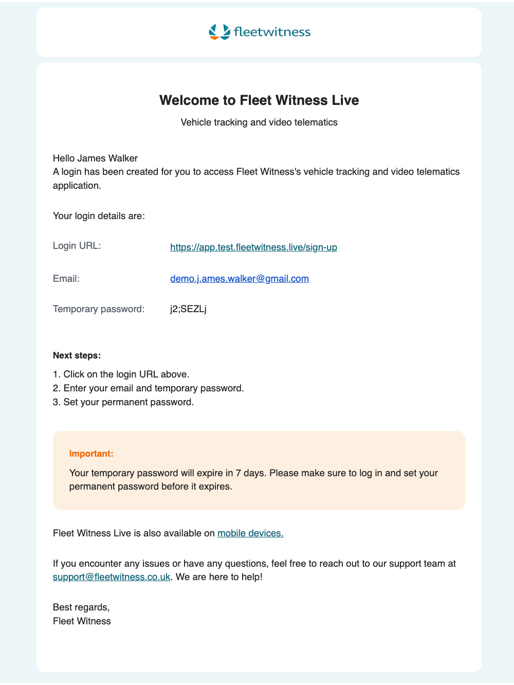 Once invited to the application, you will receive a welcome email with your temporary credentials.